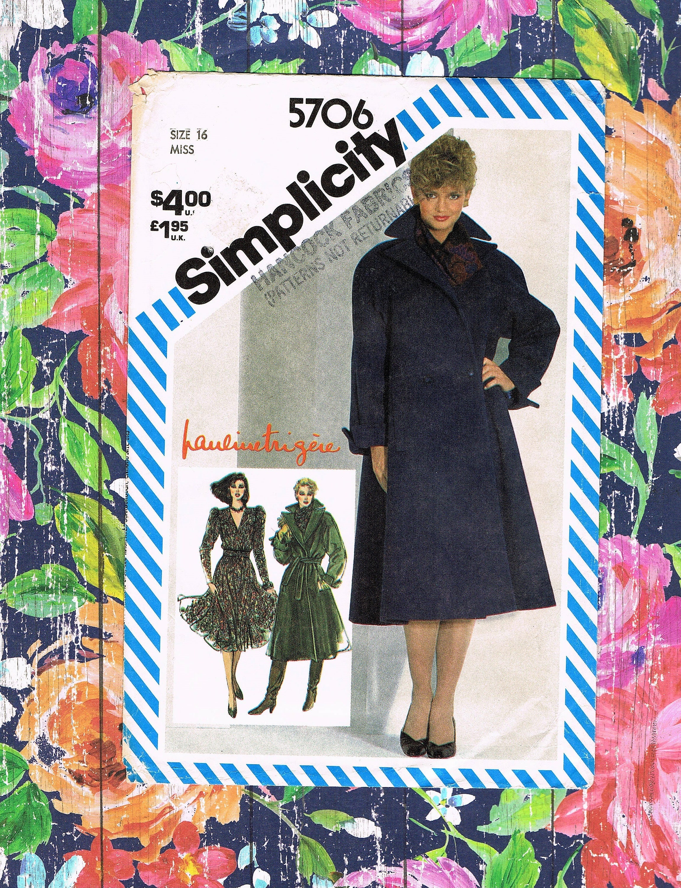 1980s Oversized Trench Coat Pattern Vintage Simplicity 6524 Bust 34 Ff Coat Pattern Sewing Trench Coat Pattern Simplicity Sewing Patterns